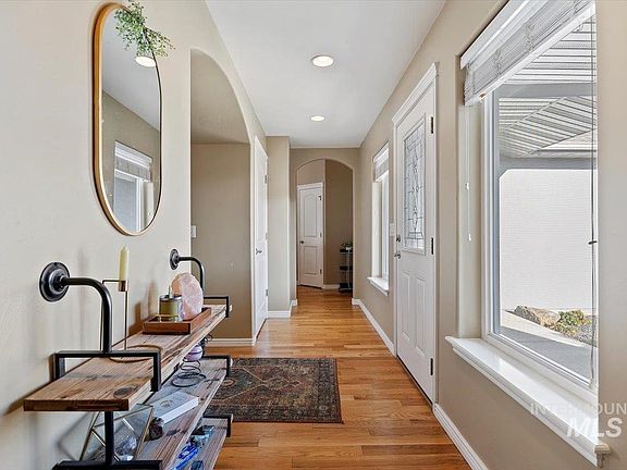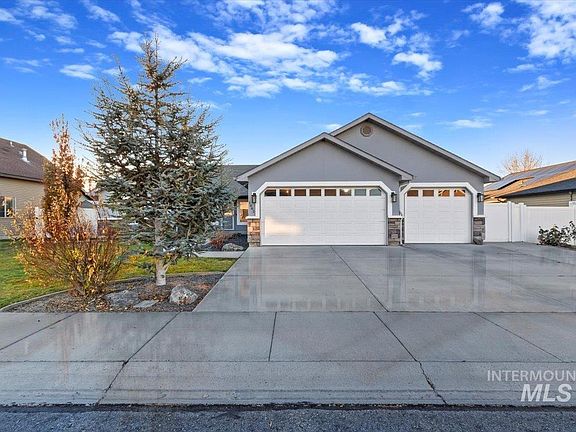 Beautifully built single-level home! This charming pocket enjoys low traffic and unbeatable proximity to dining, shopping, St. Luke's Hospital, and the Snake River Canyon. This updated residence lives large with a spacious open great room and remarkably updated kitchen that is surrounded by a cozy gas fireplace, hardwood floors, tall vaulted ceilings, and large windows that craft a bright & airy home with the quality of construction throughout. The kitchen underwent a stunning remodel, anchored by a spacious granite breakfast bar, custom cabinetry, and stainless steel appliances. All of the bedrooms are generously sized and include plenty of storage/closet space. Private primary suite with en-suite bathroom boasts a dual-sink vanity, glass walk-in shower, soaker tub, and walk-in closet. Beautifully landscaped with curbing, and a fenced backyard that includes a large stamped patio, gazebo with fan and privacy screen, spa & raised garden beds. Large 3.5 car garage includes a pull-down ladder for attic storage.
