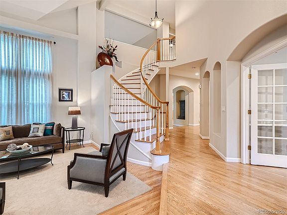 Beautiful luxury model home in Rock Creek neighborhood enjoys professional landscaping, mature trees, and open space views on a quiet cul-de-sac street. Main floor has two fireplaces, high ceilings, wood flooring, and large windows throughout the nice sized living room, office and open great room with dining, kitchen, and family room. Kitchen boasts great counter and cabinet space, island, walk-in pantry, Viking gas stove and Sub-Zero refrigerator. Up the elegant spiral staircase is the oversized master bedroom with reading area that looks out through the aspen trees. Two way fireplace separates the master and bath bringing heat to both rooms. Shower, bathtub, his and her sinks and walk-in closet fit nicely in this spa like setting. Two custom painted bedrooms with full bathroom make up the rest of the second floor. Down the main level spiral staircase is the unfinished basement with plenty of room for exercise equipment, kid's toys and play area and storage. Out back includes stamped colored cement patio with built-in Matt-Granite counter island with Saber gas barbeque; surrounded by trees, grass yard, and a common area greenbelt. Rock Creek community benefits from acres of open space, bike trails, swimming pools and playgrounds. Minutes from Flatirons Shopping Center, Costco, Whole Foods, Starbucks, Safeway and many other restaurants and shops. Call Lynn Bowles for a showing: 970.445.8222