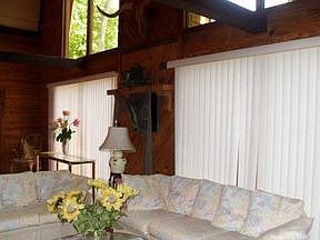 A charming lakefront getaway nestled in beautiful hardwood trees with private pier & floater, concrete boat ramp, seawall, boathouse which will fit a 24 ft. pontoon or can be utilized as a 1-car garage. This home is located in a quiet cove, but is only 375 ft. from the main channel. Entertaining is easy with the large lakeside deck with access from the great room & kitchen. Lakeside screened gazebo for dining . Kitchen, dining & great room are open with vaulted ceiling in great room. Two bedrooms upper level with a great lake view from the balcony which overlooks the great room. The lot size will allow an addition if more space is desired. Large storage building for all lake toys. This well-maintained home is ready to move in and enjoy the lake this summer. Furnishings are negotiable. $254,000 336-239-7253