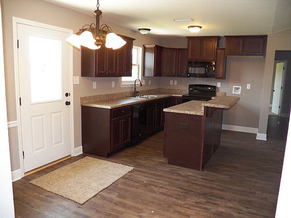 Move-In Ready, and loaded with amenities! Vaulted ceiling in living room, GE appliances, Split bedroom design, walk-in closet, dual vanity in master, Burke flooring, center island bar, oversized soaking tub with separate shower, manifold water system, 2-10 Home Buyers Warranty, and much more.This brick home sits on a large corner lot with a rear driveway, and attached storage room. This property is eligible for USDA Financing. Also has a privacy fenced yard and separate storage building great for a tool shed or for more storage.