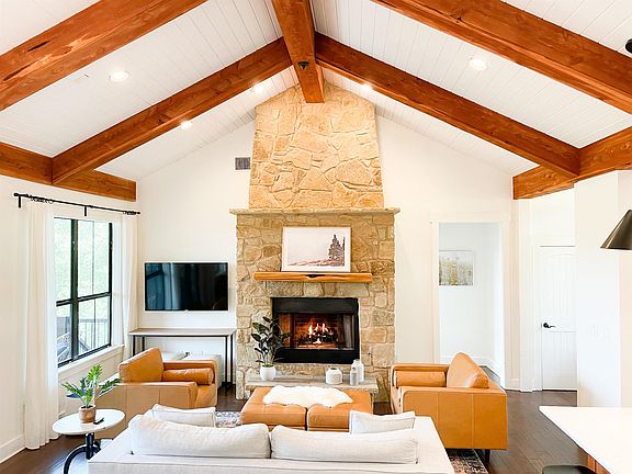 Priced to SELL! Think Joy, Rejuvenation, Serenity. This Canyon view getaway home is located in the fabulous planned neighborhood of the Hollows featuring a wide range of resort-style amenities including access to Lake Travis, pools, grilling and picnic areas, pavilions, hiking/walking trails., playground, parks, and more. The neighborhood also features a marina which is available for an extra cost. This cottage-style cabin is super stylish with warm wood flooring & cabinetry & soaring ceilings in the living area. The open-plan kitchen/dining/family room is anchored by a massive stone fireplace which is the perfect place to cozy up to on those cooler days and evenings. With a center island, granite counters, & stainless appliances, the kitchen is a cook's dream for entertaining. Or, head outside to the oversized outdoor living area to catch a cool breeze overlooking the trees. You could roast marshmallows over the firepit or just sit and listen to the cicadas in the evening while relaxing. The primary bedroom boasts an ensuite with a large walk-in shower & dual vanities, plus there are two other good-sized bedrooms with a shared bathroom. This home truly is a special place to be... Currently in use as an AirBNB, this home can be sold fully furnished & amenitized. Fully move-in ready. Excellent second home or investment property. Ready to relax & enjoy the nature, peace and solitude, from day 1... Opportunities like this are rare, so let's connect to schedule a time for you to view this very special spot
