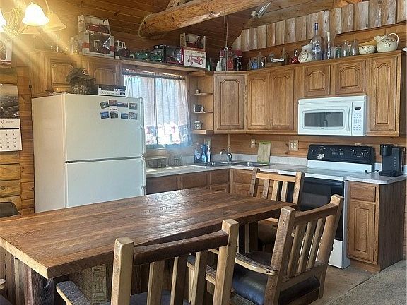 Log Cabin featuring 2 Bedrooms and 1 1/2 baths. Open Concept kitchen/living room area. Main floor laundry. Detached garage with office space. All sitting on 15.963 acres on a dead end road.