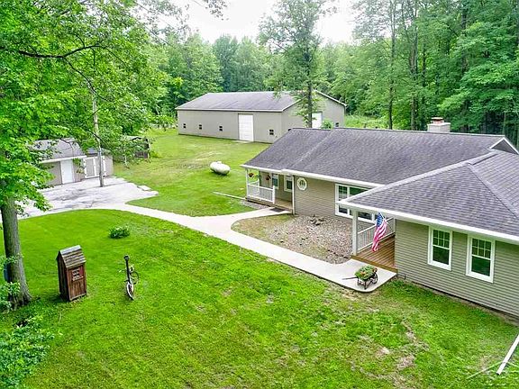 If you're looking for a beautiful place to call home, surrounded by mature trees, the peacefulness of nature, and need a lot of space to store your "toys" this could be your perfect match! There are beautiful views from every room in this updated split ranch home, with access to a sprawling back deck with french doors on two bedrooms, a beautiful sun room facing the back woods and even while you work in the kitchen, the large windows fill the room with light. Tons of updates - ask the agent! The 50x90 pole barn is ready for you too! Insulated, electricity, wood burner, hydrant - it's all there! And if that isn't enough space, the detached garage also has a work shop area. Privacy, space, updated home = a little slice of paradise.