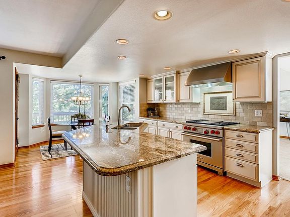 What a pretty home! Beautifully remodeled, backs to greenbelt and park, fully fenced with gate to park and is located on a quiet cul de sac! THIS ONE COULD BE IT! Kitchen has granite counters, Wolf Oven, GE Profile & Kitchen Aid s/s appliances, Thomasville cabinets with pullouts, full extension, snapback drawers, and a sunny eat in kitchen. Cozy gas fireplace in family room. There are lots of hardwood flooring, including stairs with wrought iron railing. New interior paint & vaulted ceilings. Newer furnace, newer hot water heater. Fully finished basement with wet bar, dishwasher & microwave. Media area with surround sound. Large Trex Deck overlooking park, small separate patio for secluded hot tub with 220V hook up already installed. 3 car garage with service door & utility shed right outside. Kid and pet friendly cement edging around all landscaping. NEW ROOF WILL BE INSTALLED! Walk to pool and Elementary school. Cherry Creek Schools. This home is move in ready!