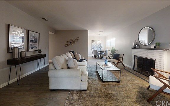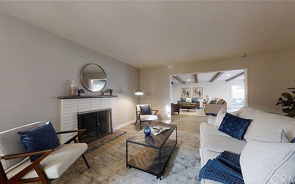 Beautiful interior location single story home offers everything you and you family are looking for. Located in a top ranked school district, while conveniently located near shops and restaurants, yet only a few miles from the beach! The amenities begin with an extra large driveway that easily accommodates an RV, boat or multiple cars. This original-owner home has 3 bedrooms, including an extra large room with two closets and a sliding glass door leading to it's private patio. Both bathrooms have been completely remodeled, including quartz countertops and his-and-her sinks for the master bath. This home is light and bright with newer dual-paned windows, central air conditioning, and fresh paint inside and out. Brand new luxury vinyl plank flooring flows throughout the entire house! The kitchen is upgraded with marble countertops and all new stainless stainless steel appliances. Large living room with a modern brick fireplace opens up to a huge bonus room with two sliding glass doors that open to the spacious and private backyard (no rear neighbor). This open and airy living space also boasts a custom built-in bar area with modern subway wall tiling and room enough to add a pool table, theater area, or even a playroom where the kids can enjoy ice cream and pizza at the bar. The possibilities are endless! You have to see it to fully appreciate it. WELCOME HOME!