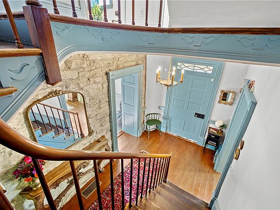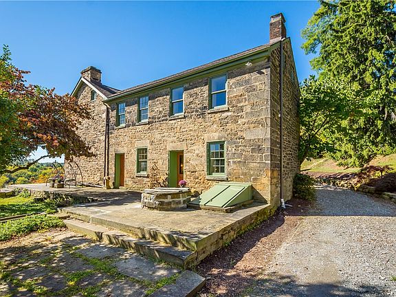 Be transported in time to this 1803 Georgian Colonial Mansion! The old-world charm is complete with craftsman detailing, stunning 19th century stonework, massive original hearths, and intricate fluted trim with corner rosettes. This 4 bed 3 bath dream is updated and upgraded with marble and ceramic baths, custom lighting, and refinished hardwood floors! Massive windows envelop the open concept kitchen with light while the cathedral ceiling with exposed cedar beams, stainless steel appliances and generous countertops effortlessly blend into the classic elegance of the estate. The secluded primary suite is refined with a large closet and stunning views. The main bath has a light and bright spa-like feel; while built-in bookshelves anchor what used to be the original owners' retreat. Set on an enchanting 61 acres with wooded trails, streams, and pasture; the world’s your oyster to explore with ATV’s or horses. 1885D East Beau Street isn’t just a home, it’s a chance to make history.