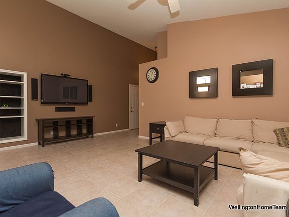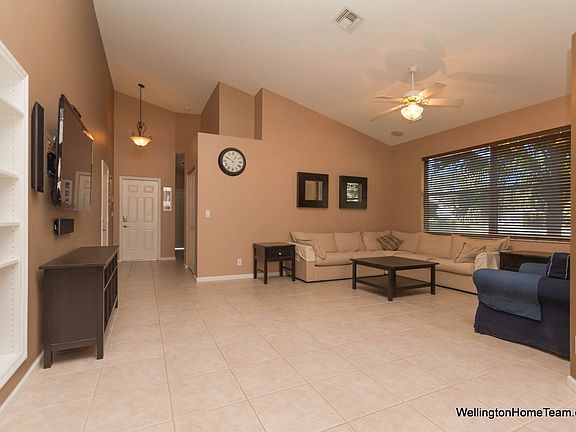 Great Wellington Lakes Home for Sale featuring 3 Bedrooms, 2 Bathrooms and a 2 Car Garage. Situated on a cul-de-sac lot this one story home offers an open floorplan, vaulted ceilings and tile throughout the main living areas. The oversized family room is open to the dining room, which offers sliding glass doors that lead out to a paver patio. The kitchen features white cabinetry, a nice size pantry and the refrigerator and microwave are only two years old. For more information visit: http://wellingtonhometeam.com/listings/1886-capeside-circle-wellington-florida-33414/ The master bedroom also has sliding glass doors that lead out to the paver patio, a wall to wall closet, vaulted ceilings, wood floors and a private bathroom. The renovated master bathroom features dual sinks and walk-in shower. The secondary bedrooms are a nice size and share a guest bathroom. Additional features include custom blinds, air conditioned garage, separate 30amp circuit installed in the garage for high powered tools and a full size washer and dryer, which is located in an interior utility closet. The family room has a built-in media cabinet where all of the wiring terminates to and every room has cable and internet ports, including the garage. Wellington Lakes is a non-gated single family home community located in the heart of Wellington off Big Blue Trace. Community amenities include a swimming pool, playground and fishing dock. Shopping, dining and entertainment is in every direction of Wellington Lakes, including the Mall at Wellington Green, the Wellington Library and Wellington Amphitheater. Top rated Wellington schools are also a short drive away along with the equestrian show grounds.