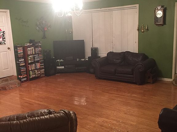 Beautiful family home sitting on approximately 5 acres in the city limits. Circle driveway that leads to the two car garage in the back of the house. Detached shop/storage measuring approximately 15 x 20. Oak hardwood flooring in foyer, living room, and dining room. Living room has a lovely stone fireplace with gas logs. Large master bedroom with direct patio access. Master bath has gorgeous marble flooring and accents throughout, his and her sinks, as well as a jacuzzi tub. Kitchen consists of all major appliances and all the cabinets you could need. Large laundry room with storage space and shelves throughout. Also newly installed tile flooring in kitchen and laundry room. Newly installed light fixtures throughout most of home. Electric heating and air unit less than two years old. Newly installed 30 foot above ground pool. Flower beds, various landscaping, as well as fruit trees are all also part of this must see property.
