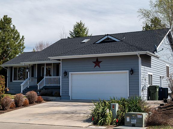 Meticulously maintained and thoughtfully updated over the years, this beautiful home is nestled in a quiet neighborhood, just a short walk from Mountain View Park. Updates include fresh interior and exterior paint, a double oven and microwave, LVP flooring, upgraded countertops, a 50-year roof, plantation shutters, and energy-efficient LED lighting. The attached sunroom provides additional living space, perfect for soaking in natural light year-round. Inside, the bright and airy kitchen features a skylight, while the primary suite boasts french doors leading to the deck, a walk-in closet, and dual shower heads. The finished garage offers cabinets, overhead storage, and pulleys for bikes and kayaks. Step outside to the backyard, complete with an expansive deck, apple trees, lilacs, and a matching shed, all designed for low-maintenance enjoyment. Watch 4th of July fireworks from the front porch and enjoy partial cascade mountain views in winter—a home you won't want to miss!