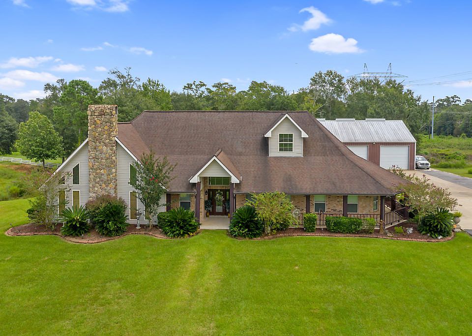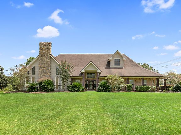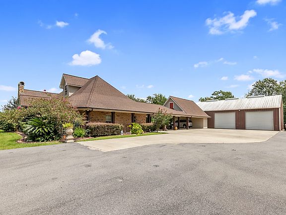 Custom home on over 13 acres located near Sam Houston Jones State Park. Home has gourmet kitchen w/granite countertops, snack bar, spacious dining, beautiful windows and brick paver floors. Living room has cathedral ceiling with wood beams, gas fireplace, and balcony. Entertain guest in second living space/large game room with cathedral wood ceiling, exposed beams, stone fireplace and bar area. Split master floor plan. Master bath includes handicap shower, tile shower, and walk in closet. Each downstairs bedroom has its own bathroom. There is an office and half bath just off the living room. Up the spiral staircase is a fourth bedroom or playroom. The property also features tons of storage from the 40 x 60 metal workshop, two storage areas under the carport, and the storage space above the carport. Enjoy sitting outside at the gazebo, porch or grill area. Home has a Generac generator, 500 gallon propane tank, and two propane tankless water heaters. All measurements are M/L.