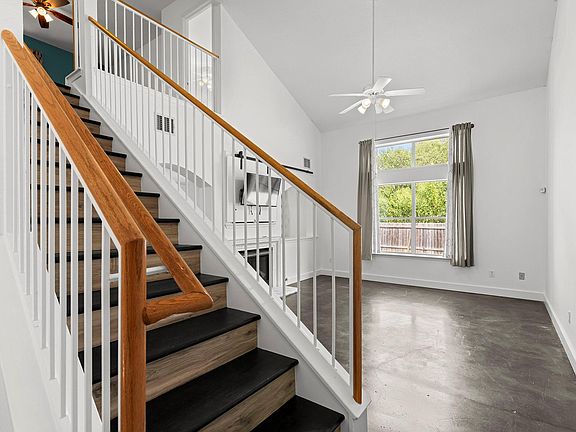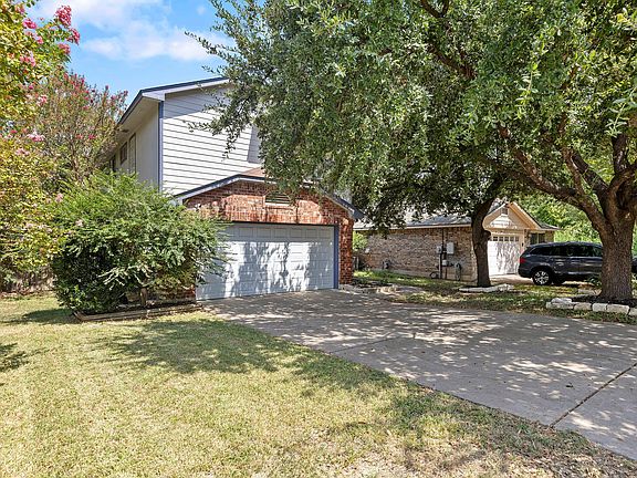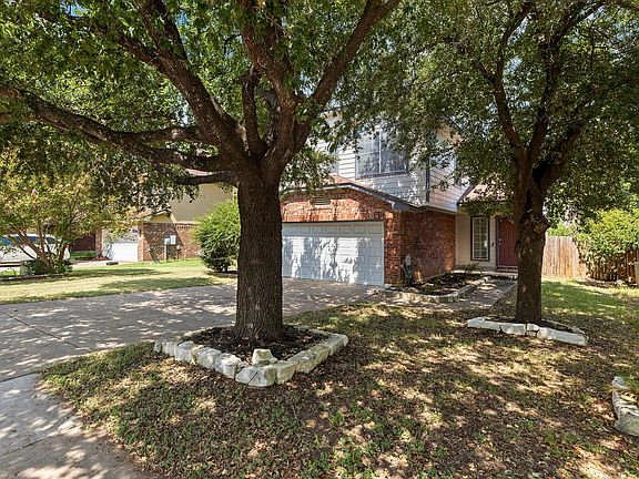Tucked beneath the shade of a wide, mature oak and surrounded by flowering crepe myrtles, this sun-drenched two-story home in Jester Farms feels like a fresh breath of Central Texas air. From the moment you pull into the two-car garage, you'll notice the kind of space and serenity that's hard to find in Round Rock at this price point. Inside, the living room opens up with soaring ceilings, polished concrete floors, and streaming natural light that pours through oversized windows. A cozy fireplace anchors the space perfect for movie nights or rainy afternoons and the layout flows easily into a bright, all-white kitchen with backyard views, an island ready for weeknight prep or homework sessions, and sliding doors that lead to the covered patio. Step outside and you'll find a generous backyard with plenty of grassy space, privacy fencing, and a detached shed that's just waiting to become your next creative project space or extra storage. Upstairs, an airy second living area offers flexibility for a playroom, media lounge, or your dream WFH setup. Just beyond, the open office loft is ideal for focused productivity or relaxed reading breaks. The primary suite keeps things tranquil with tons of natural light, a walk-in closet, and a private en-suite bath for ease and comfort. Two more bedrooms each with fresh flooring, colorful accent walls, and their own playful personality round out the upstairs. This home has 2 bedrooms + open office, 2.5 bathrooms, and a layout that works whether you're hosting a game night or kicking back after a long week. Plus, the location is a win: just five minutes from the community pool and walking trails, and less than 10 minutes to schools, groceries, and major commuter routes. Easy to fall for. Even easier to move into. Let this be the home that gives you space to grow and room to breathe.