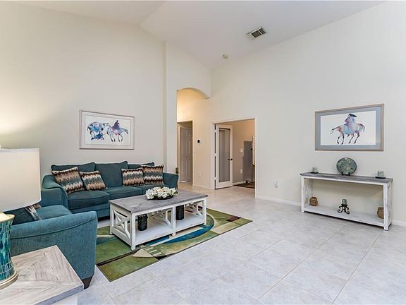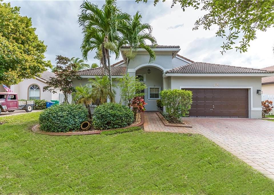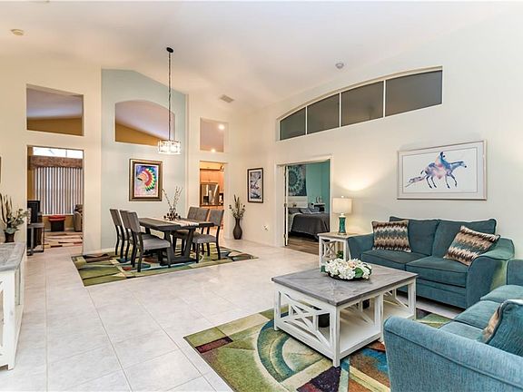 GORGEOUS ONE STORY POOL HOME WITH FOUR BEDROOM, TWO AND A HALF BATHS LOCATED IN SUNSET LAKES! THIS HOME FEATURES VOLUME CEILINGS, TILE FLOORING IN THE MAIN LIVING AREAS, AND WOOD LAMINATE IN BEDROOMS. SPACIOUS MASTER SUITE WITH WALK-IN CLOSET, AND UPGRADED MASTER BATH WITH NEW VANITIES. KITCHEN FEATURES GRANITE COUNTERTOPS, WOOD CABINETRY AND NEWER STAINLESS STEEL APPLIANCES. HOME IS PROTECTED BY ACCORDION SHUTTERS AND IMPACT FRENCH DOORS! EXTERIOR OF THE HOME WAS RECENTLY PAINTED. BRAND NEW A/C JUST 3 MONTHS NEW! PEACEFUL FENCED-IN BACKYARD WITH A SCREEN ENCLOSED POOL!