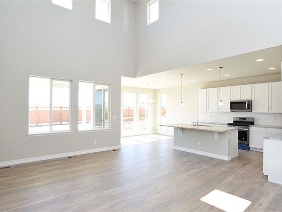 BRAND NEW HOME!! Colorado modern farmhouse-Rare 5 bedroom with main floor master! Covered patio. Master with spa bath, laundry and powder bath. Beautiful granite kitchen open to great room with dramatic vaulted ceilings and dining area featuring floor-to-ceiling windows. Two large bedrooms and a full bath upstairs. Upgraded 8' doors. Open rail to surround. Bonus room at basement level included. 9' basement ceilings. White kitchen cabinets and beautiful designer finishes.