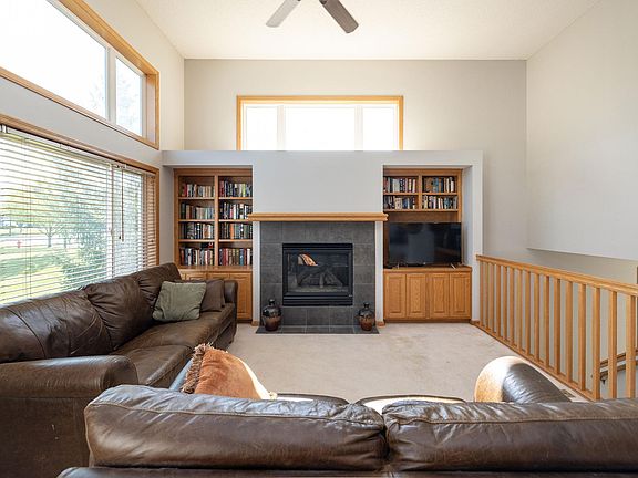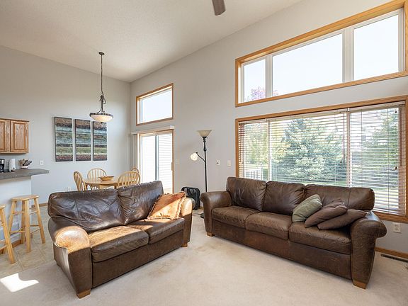 One-owner quality Wensmann built end unit. Sunny SE facing surrounded by green space. New lower level carpet & fresh paint throughout. Main living area with open two-story great room design, tile-faced gas fireplace, built-ins & wired for surround sound. Separate breakfast/buffet bar & formal dining room opens to deck. Hugh foyer. Hall bath & 2 bedrooms up; master with private bath & walk-in closet. Lower level with family room, third bedroom/office space, laundry & rough-in bath. Newer appliances. Microwave & dishwasher 2020; washer/dryer 2017; water softener & heater 2015. Lakeville schools. Note the storage/storm shelter with full head room below the foyer. Can't beat this location; convenient to everything while located on a quiet cul-de-sac end unit with large mature trees and lawn.