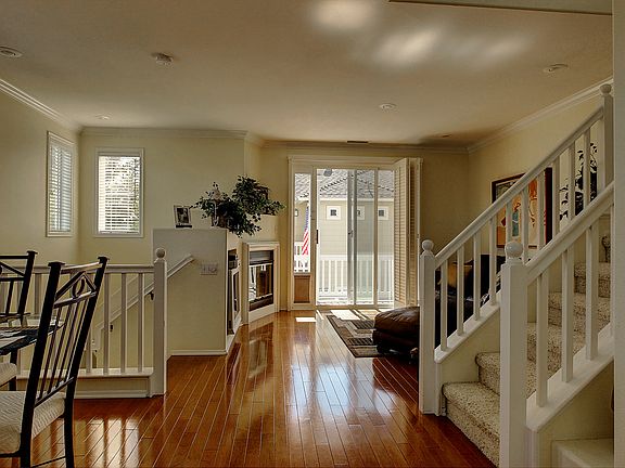 Beautiful & immaculate 3 br, 3ba detached townhome in desirable Cape Ann Community. End unit w/view of greenbelt for extra privacy. Designer paint, hardwood flooring, recessed lighting, dual pane windows, plantation shutters, crown moldings & ceiling fans throughout. Downstairs bedroom w/large reach in closet, along w/a full bath w/separate inside laundry area. Newer carpet on stairs. 2nd story boasts spacious kitchen w/pantry, tile counters, separate bar top eating area, light & bright living room w/cozy fireplace that overlooks balcony w/large slider. 3rd floor has large master suite w/walk-in closet. Master bath has dual sinks, shower & tub. Third bedroom is full of natural light as well as a mirrored closet. Over size 2 car garage is attached w/direct access and has lots of custom storage with side door access to beautiful secluded side yard covered in lush landscaping w/brick and grass area perfect for lounging. New water heater. Walk to community pool, park & playground, close to shopping. Buyer must meet city qualifications. Income limits to purchase by household size: 1=$73,250; 2=$83,700; 3=94,200; 4=$104,650; 5=113,000.