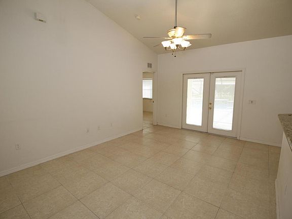 Come see this beautiful home located in South East Palm Bay. This home features three bedrooms, two bathrooms, family room, dining area, inside laundry room, kitchen with breakfast bar, maple cabinets, granite counter-tops and brand new stainless steel appliances. There is tile throughout all the living areas and there is an extra room that could be used as a fourth bedroom or flex room. The master bedroom has a walk-in closet, large walk-in shower and garden tub. Master bedroom also has french doors that lead out to pool area. There is a screen in sparkling pool along with Jacuzzi. Home also comes with hurricane accordion shutters and has extra large driveway. Hurry this one wont last long! Make your appointment today!