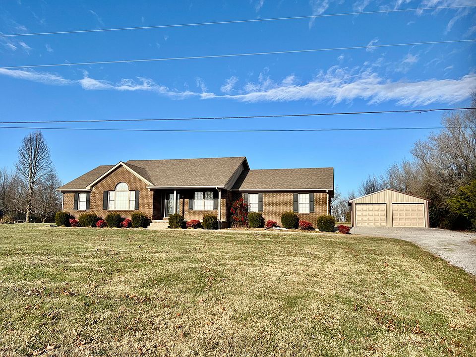 Amazing, immaculate brick home situated on a beautiful 2.6-acre cleared and level lot, offering approximately 2,800 sq. ft. of finished living space with room to grow. This well-maintained home features 3 bedrooms and 3 full bathrooms and provides a spacious, functional layout ideal for comfortable everyday living and entertaining. The main level offers a large, welcoming living room, a beautiful kitchen with abundant cabinetry, granite countertops, and stainless steel appliances that will remain. A formal dining room, foyer, and convenient utility room complete the main living areas. The primary suite is located on the first floor and features a gorgeous private bathroom with a stylish tile shower. Hardwood and tile flooring run throughout this level, adding warmth and timeless appeal. The partially finished basement expands the living space with a large family room/rec room, a bonus room with closet, and a full bathroom. Luxury vinyl flooring is featured in the basement, along with approximately 700 square feet of unfinished storage space that could easily be converted into additional living areas if desired. Additional highlights include an attached two-car garage and a 24x26 metal detached garage, providing ample parking, storage, or workshop space. The exterior is just as impressive, offering a pea gravel sidewalk, beautiful landscaping, a covered front porch, and a nice back deck perfect for relaxing or entertaining. The home is served by central heat and air and city water. This property offers the perfect blend of space, quality, and outdoor enjoyment—truly a must-see home.