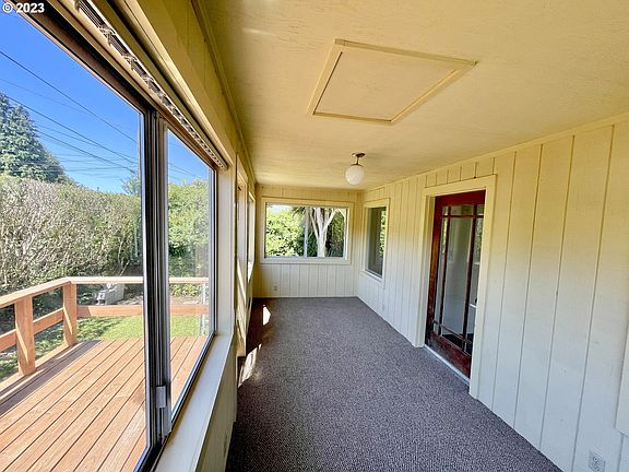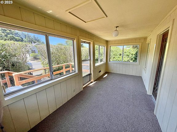 Dreamy coastal bay town bungalow with a mature secret garden-like yard. With a fresh coat of paint and flooring throughout the interior, this classic home has 2 Bedrooms, 1 Bathroom, Kitchen, Dining Room, Living Room, Laundry, Pantry, Covered Entry Sunroom, Enclosed Mudroom with sink all on the main floor, and a large finished attic that could be used as a generous third bedroom. At the back of the lot, there is an ample-sized detached garage accessed from the alleyway. Enjoy this oversized fenced lot with a tall hedge for excellent privacy within a large cultivated yard including a superb apple tree and towering palm trees. This one will not last and is waiting for you to create new memories!