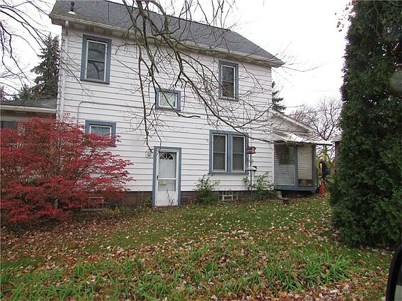 Large two and a half story farm house with lots of potential sitting on approximately one acre. Gallery kitchen with dining area, formal dining room, living room with wood burning fireplace. Family rom with gas fire place. First floor bath. Three large bedrooms and bath upstairs. Walk up attic. Full basement with integral garage. Two out building, presently used for storage. Well and public sewers. Open front porch.