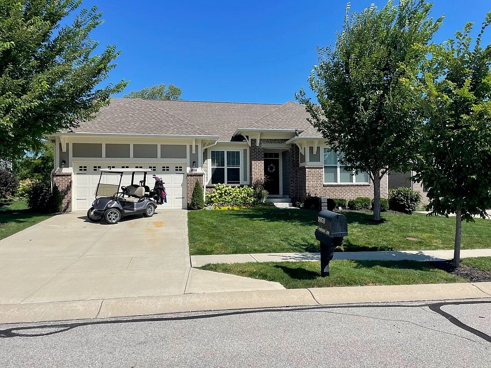 This impressive one-story with finished basement offers an abundance of luxury and comfort across its 3,400+ square feet. Inside, you'll be greeted by soaring 12' ceilings and stylish engineered hardwood floors that flow through the kitchen, dining and Great Room. Gourmet kitchen features Quartz countertops, classic tile backsplash, stainless steel appliances w/ gas range, 42" cabinets, and an oversized center island that overlooks into the airy and open family room with cozy gas fireplace. The primary bath boasts a floor-to-ceiling tiled shower w/ bench, raised vanity with dual sinks, and large walk-in closet connecting to the laundry room. A Jack & Jill bath compliment bedrooms 2&3 providing ample space & privacy for family and guests. Step outside to the screened-in porch with an extending deck, where you can enjoy the fresh air and lush landscaping. Enjoy the convenience of the finished basement with 9' ceilings that boasts an impressive theater room complete with projector, sound system and screen. At Connor Crossing, an annex of Pebble Brook Golf Course, the community offers a unique blend of charm and relaxation. Cruise on golf carts to friends' homes for cookouts, or explore the neighborhood's amenities, including stocked ponds, pool, and playground. Fantastic golf course neighborhood culture w/ social activities year round. This is a golf-cart friendly neighborhood. Optional membership to Pebble Brook Club: 36-hole golf course with 2024 updates coming soon 4-6 bay golf simulator and renovated restaurant and bar.