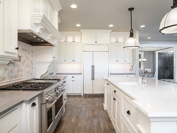 - Appliances: Dishwasher, Refrigerator, Wine Cooler, Range Hood, Instant Hot Water, Built-In Range, Island, Tile, Quartz, Butler's Pantry