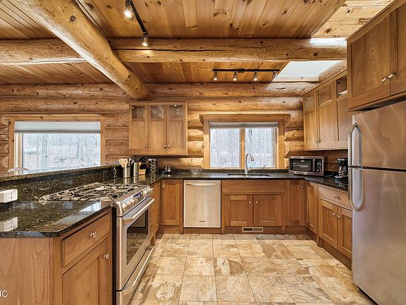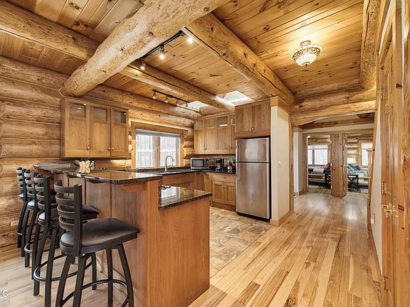 Pristine river setting! Vacation in your investment! Let guests pay off your ultimate getaway home. Full scribe, Norway pine, full log home on 3 acres with perfect gradual slope to gorgeous BETSIE RIVER frontage! $52,000 income in 2020 after web site and hotel tax fees. Being sold ''turn key'' with all quality furniture, linens, cookware, dishes etc. staying. Custom features include sassafras cabinets, granite countertops, stone gas fireplace, hickory floors and stone tiles. 2 bedrooms and bath on main floor with master bedroom, 4th bedroom, full bath and flexible loft area upstairs. Upstairs laundry! 24x32 garage w/unfinished room above, sauna and 2 sheds. Diverse outdoor living spaces include covered front porch, fire pit gazebo, two tiered deck and covered back porch riverside. Nice!