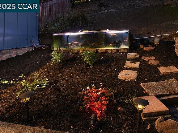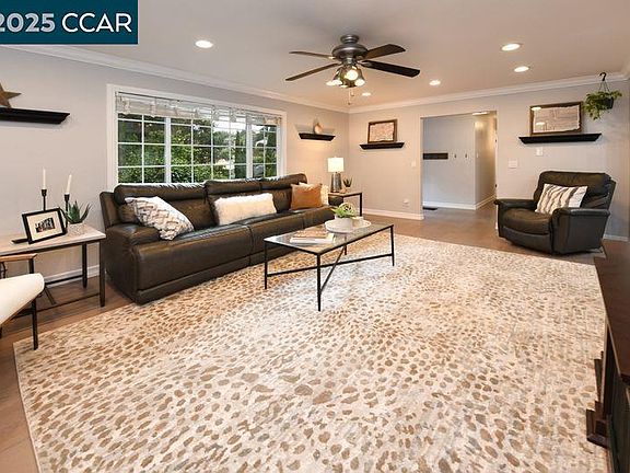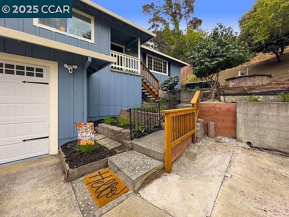Wonderful Castro Valley Home adjacent to Open Space with long private driveway and ample parking with an occasional deer on the hillside. Formal living room with engineered wood flooring and a large picture window which brings in lots of natural light. Formal dining room with engineered wood flooring and French doors opening to the deck—perfect for entertaining & barbecuing. Updated kitchen with quartz countertops, tile backsplash, stainless steel appliances, and generous cabinet space. Three bedrooms on the main level with a spacious hall bath (dual sinks & tub/shower combo). Primary suite with updated bath and walk-in shower. Lower level: 4th bedroom with sink + refrigerator (ideal au-pair/in-law setup) and sliding doors to the patio with seating by the fire pit and table and chairs for dining. Separate family room with half bath and interior access to the two-car garage. Outdoor living space on both the main and lower level. Convenient to shopping, restaurants, Eden Medical Center, and freeway access.
