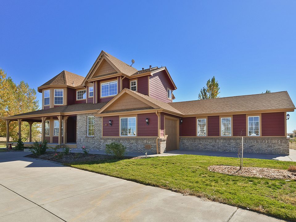 Incredible semi-custom home on beautiful 2 acre lot. Huge 4 car garage for all your toys. Custom updates throughout including all baths with custom tile, fixtures and treatments. Large open kitchen with oversized raised panel cabinets. New hi grade carpet and pad throughout. Main floor bedroom with 3/4 bath for those with elderly parents. Huge wrap around porch to watch the sunsets. Nearly an acre of professional landscaped yard with sprinkler and drip systems. Large play area, dog run, custom flagstone patio with log pergola. Perfect location only minutes to DIA and 20 minutes to downtown Denver.