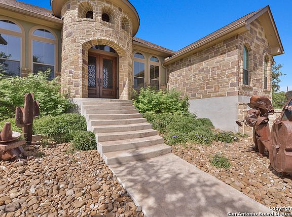 STUNNING, secluded Texas Hill Country home on 5.96 acres in Helotes Springs Ranch. High ceilings, tons of natural light and open floor plan with breath taking travertine floors throughout the main living areas. Carpet only in bedrooms. Chefs kitchen w/granite counter tops, double ovens, gas range, microwave, walk in pantry. Breakfast bar and eat in area. Sep dining rm and office. Enjoy the peace & quiet by the Gorgeous pool, outdoor kitchen, covered patio with fireplace. Side entry garage. Special yard/tree lighting. Sprinkler system in yard. 3 Car garage.