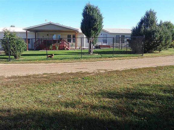 Beautiful 3 bedroom, 2 bathroom, very spacious home with an attractive 6 ft high fenced in front yard! An added bonus 32'x40' shop with 1 overhead door and 1 slider door. Great for the do it yourself person! All on 2.45 acres! Home has a formal dining area next to a large living room. A large master bedroom with a large walk in closet and a large bathroom. Step from the dining area out onto a covered 9' x 13' deck on the south side. Covering the deck is a 16' x 20' canopy. Outside dining in the shade! Close to town but yet it has privacy with great views. Mobile Home Title has been surrendered to the State of South Dakota.