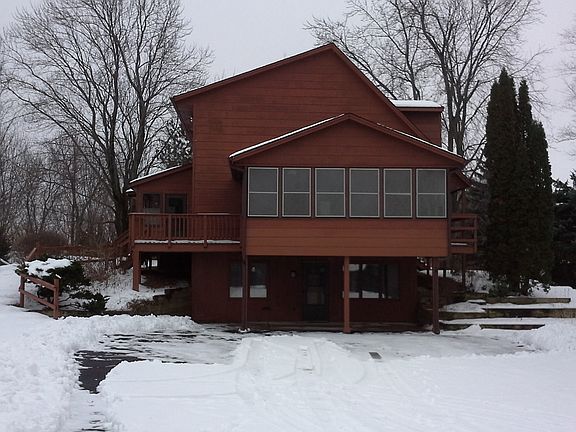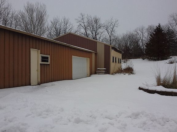 Perfect home for country living on 2.64 wooded acres, w/in 5 minutes of town. Enormous pole barn w/5 garage stalls. You can't build them this big anymore. Insulated workshop & plenty of room for toys! LL is an apt w/kitchen & private bath. Main level has open kitchen flr plan & 3 season porch. Upper level - large mstr bedrm suite w/walk-in closet plus two bedrooms. New carpet, 3/4" honey oak flring & other hardwds, mostly Anderson windows, new central ac 2016.