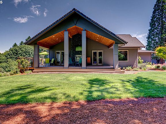 Once-in-a-generation opportunity to own 180° panoramic bluff views in Oregon City—overlooking the Willamette River, Pete’s Mountain, and the Coastal Range. Nestled on a quiet, no-through street among towering sequoia,fir and maple trees, this contemporary retreat is an entertainer’s staycation dream.The open-concept layout features vaulted ceilings, hardwood floors, Andersen wood windows, and 3 walls of glass and French doors illuminate the home with natural light. The gourmet kitchen offers a large eating bar for 6, commercial fridge/freezer, gas stovetop, warmer drawer, pot filler, wine fridge & quartz. Two sets of glass doors lead to a stunning vaulted outdoor living room with built-in lighting & TV hookup—watch big game or read into night, cozying up to the gas fireplace with soaring ebony split-stacked stone chimney.Peer through the glass railing on 73-ft cedar deck overlooking the 330-ac Canemah Bluff Nature Area, offering unobstructed sunsets & wildlife views. Host cookouts on a gas-plumbed BBQ in your private garden oasis framed by an intriguing orange-brown patinated custom Corten steel fence.Retire to city lights,awaken to panoramic views in your main-level primary suite w/deck access through double sliding doors & features a spa-like 7x6' shower with dual heads,body sprays,seating,double sinks & walk-in closet. The main floor is completed by a 2nd bedroom, walk-in shower full bathroom, walk-in pantry with True commercial refrigerator & freezer units,laundry,double deep ceiling storage racks in 2-car garage,RV hook-up, parking for RV plus 6-8 cars.Downstairs (w/locking door) offers a large family room/office, gas fire, 2 bedrooms, full bath-tub, covered patio with optional catio/dog room—ideal for guests, rental income or multi-generational living.All just minutes from I-205/99E, historic downtown Oregon City, award-winning Main St dining, breweries, food carts, and charming towns of Willamette, West Linn, & Lake Oswego, over the historic Arch Bridge.