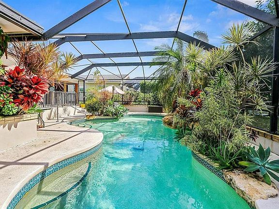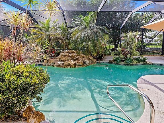 Grotto waterfallLarge back porchTropical free flowing poolUpgraded modern kitchenWater views throughout