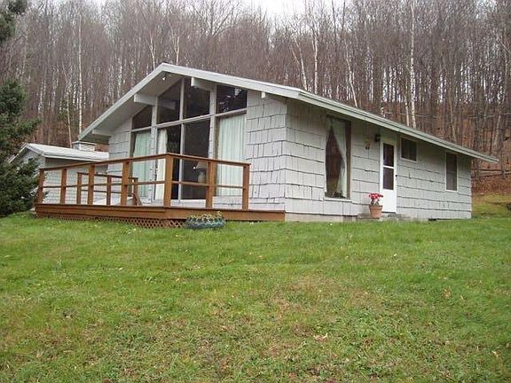 This affordable weekend getaway offers fantastic views of many mountain ranges. Located on 19.75 acres with mostly wooded land bordering a town maintained road. It is the perfect size for your weekend retreat with just enough land for hunting or recreation. The home has an open living and dining area with fireplace and new oak wood floors. Large windows and sliders line the living area letting in lots of light and allowing for the mountain views. There are also two bedrooms and a recently remodeled bathroom. A detached storage building houses a workshop. Only 5 miles from Delhi Village and very close to a golf course. Come see this low maintenance getaway! Exclusively offered at $145,000.