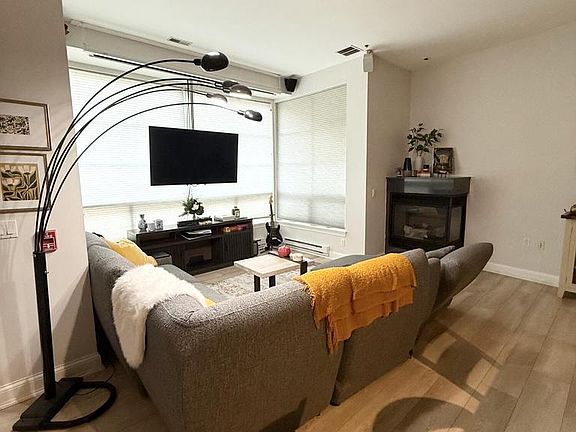 Motivated seller! Bright and inviting townhome-style condo with private entrance--perfect for quick outings or dog walks. Enjoy 12' ceilings, tall windows, and a cozy gas fireplace that fill the open-concept living area with warmth and light. The updated kitchen blends style and function, and the newly refinished main-floor half bath adds modern comfort. Upstairs, the primary suite offers Italian marble, double vanities, a jetted tub, and a walk-in closet. Includes two garage parking spaces. Prime location with Riverwalk access across the street and Tannery Row just steps away!