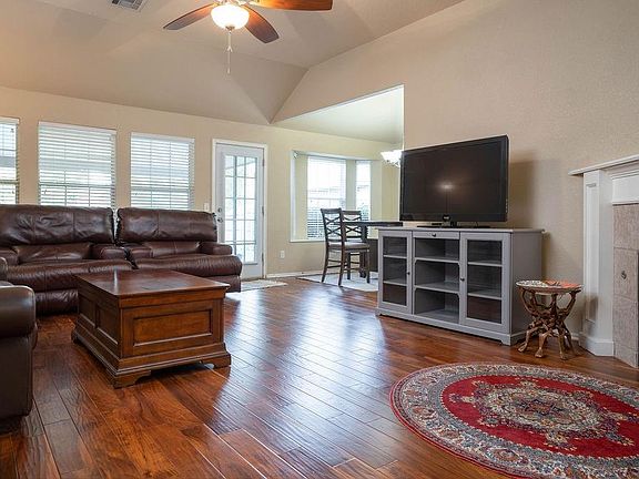 Set on a large lot this home has privacy and space. New carpet installed in May for front and Master bedrooms. Hot water tank replaced in 2023. This home has been very well cared for and looks almost new. The living room is open with a vaulted ceiling and warm cozy fireplace. The dining will hold a large table and even has a bay window with deep ledge for plants or pets. Large windows let in nice filtered light. Kitchen has been updated with white cabinets, under cabinet lighting, stainless steel matching appliances, gas cooktop & granite counters. Every secondary bedroom is large - able to hold a queen bed comfortably and has a large walk in closet. Primary bedroom is the largest of all with a large tray ceiling, two closets in the bathroom and separate tub/shower with double vanity. Engineered wood floors in all living spaces. Neighborhood has Walking Trails, Ponds and Park. Come and visit to see the privacy in the back yard and spacious comfortable home.