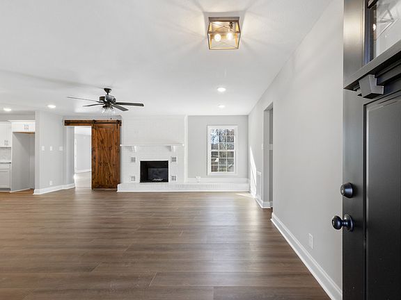 Brand new roof! One-level brick home w/a luxe modern design on 4 acres! Gorgeous new kitchen w/pristine white cabinets, sleek granite counters, stainless appliances & tile backsplash. All new wood floors/paint/lighting/windows/trim/doors/hardware throughout the home! Inviting fireplace in living room w/beautiful painted white brick surround & matching mantel. Bathrooms have been transformed w/tile flooring, tiled shower, new bathtub & toilets, stylish cabinets, marble counters, new mirrors & lighting! Formal dining, large bonus room & big utility room. Sizable two-car garage located in the basement. Exterior features a new deck, new concrete parking area & sidewalk, & covered porch. Huge 24' x 26' shop w/new siding, new metal roof, w/stairs to a full size loft providing a versatile space for your creative needs. Only 15 mins to Clarksville, high speed internet available through CEMC. Property can be subdivided to provide an additional 1.5-2 acre lot, if buyer desires!