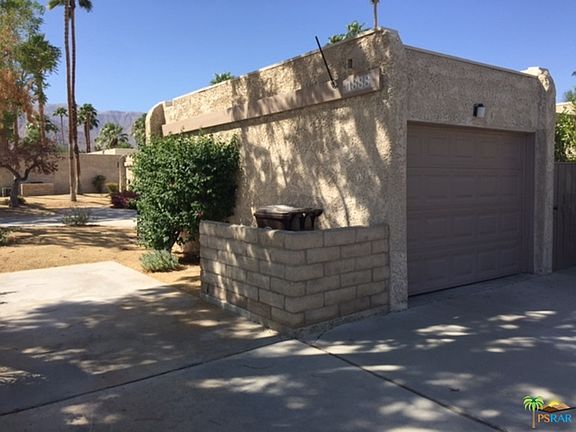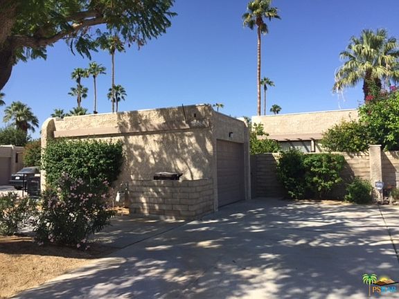 JUST REDUCED! 2/2 South facing end unit condo in the Sunrise Oasis Community of Central Palm Springs. You own the land, furnishings are included. The kitchen has a double oven and overlooks the private courtyard with its desert landscaping. The dining area off the kitchen opens to a great room with vaulted ceilings with exposed beams. The master suite has a slider with access to the wide back patio, ceiling fan, dual basin vanity, walk in shower, and a large walk-in closet. The guest suite has a slider with access to the gated front courtyard. Plantation shutters are on all windows and sliding doors in the home, except the kitchen. One car detached garage with workbench and washer/dryer included. Home is vacant and ready to sell!