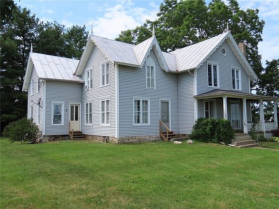 Seven Gable Victorian home with new kitchen, quartz countertops, high end appliances, updated bath, second bath partially completed. Updated heat and electric, several rooms fully insulated and sheet-rocked, great attention to detail. Detached 2 car garage. additional shed and pole barn