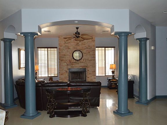 Country Living at its best. Solar panels on lease. Wrought iron front door leading to a grand entrance, gourmet kitchen tastefully done, Huge bedrooms; master bath with dual vanities, his & her closets, jacuzzi tub; 10' ceilings; surround sound; alarm system; large pantry & laundry rm; tiled & laminate floors; lots of cabinets & storage; and much more. Fully landscaped lot with block wall all around & wrought iron gates, fenced pool & Jacuzzi, concrete driveways and more. Refrigerator & W/D included.