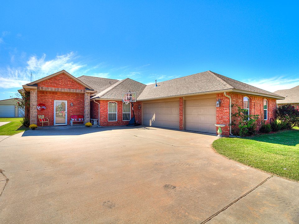 Beautiful home in Cooper's Creek on nearly an acre lot with plenty of room for a pool! Spacious, one level home provides 3 bedrooms plus a study with a closet and features beautiful custom moldings and trim throughout, an oversized 3 car garage, recently new gas range, built in microwave, large pantry, and a security system with exterior cameras! The property is complete with a 30x50 insulated shop with electricity and a carport for extra parking.