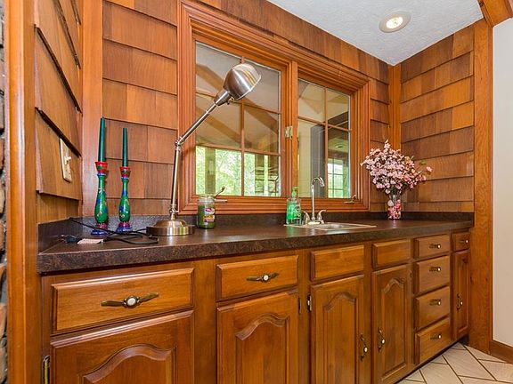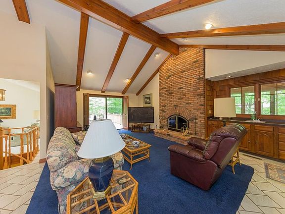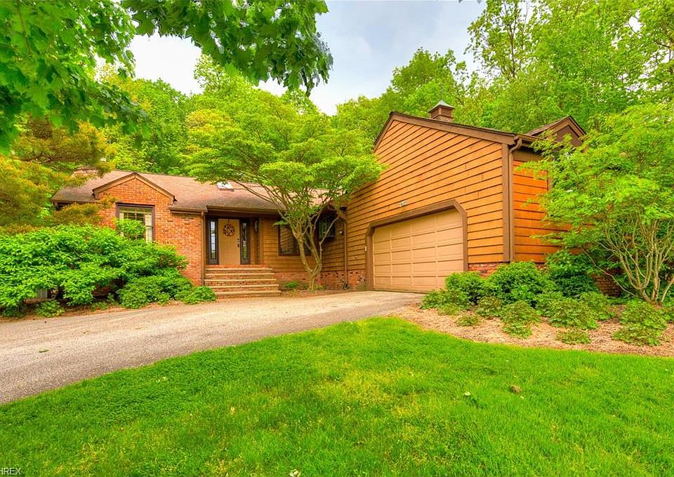 Beautifully situated ranch home on 1.5 acre lot in River's Edge. Great opportunity - home is estate owned and was recently independently appraised for $290k. Enjoy views of the garden from the newer sun porch and back deck that were updated approximately 5 years ago. Home has vaulted ceilings & wood burning brick fireplace. Kitchen has Corian counters & all appliances stay. Master Bedroom has sliding door that leads to deck plus vaulted ceilings, huge walk-in closet & Master Bathroom with walk-in shower & tub with ceramic tile. Convenient first floor laundry/ mud room. Formal Living Room has a circular staircase that leads to the huge lower level Rec Room. Other updates include 2017 hot water tank, updated bathrooms, new wet bar sink, 2015 Bosch dishwasher, newer 2006 septic replacement. Home has 2 Trane furnaces & 2 central air condensers. Attached 2 car garage, gorgeous setting on a cul-de-sac street. Chagrin Falls mailing address & Kenston schools.