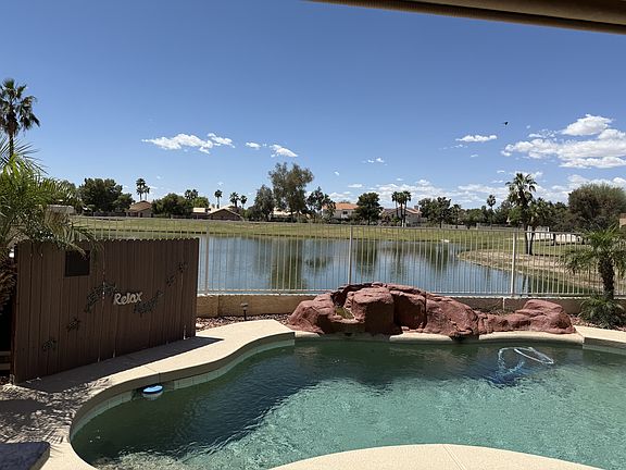 Spectacular views of the lake, golf course and sunsets!! Beautiful furnished 3 bed plus loft home. There is a balcony off master bedroom and loft with great views. Outside features include pebble tec pool with waterfall, and covered patio with outdoor television, built in barbecue, and ceiling fans. Picture windows in family room and living room with views of the water and golf course. Available furnished for a 3 month minimum rental, from September 1st to October 31st.