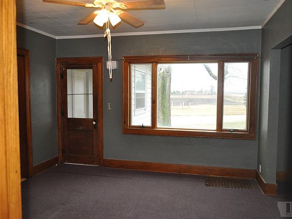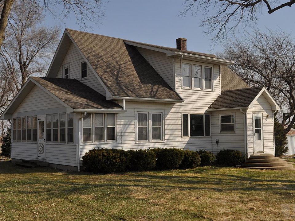 Located on a hard surface road and just minutes from town. This four bedroom 2 story home on 2.7 acres features a 2 car detached garage, large machine shed, and mature trees.