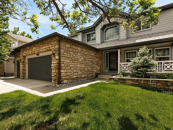 You'll love this beautiful, two-story home located in Aurora's coveted Pride's Landing subdivision! Zoned for highly-rated Cherry Creek Schools, this spacious home features a flowing, open-concept floor plan and a finished walkout basement with wet bar. The eat-in kitchen is equipped with plentiful white cabinetry, granite countertops, stainless steel appliances and a center island. Adjacent to the kitchen, the light and bright family room is anchored by a gas fireplace with stacked stone façade and built-in entertainment shelving. Main level laundry room offers abundant storage space. The spacious, upstairs master suite boasts a vaulted ceiling and luxurious ensuite bathroom with wet room, free-standing soaking tub, double-sink vanity and large walk-in closet. Enjoy mountain views from the fenced backyard oasis, which adjoins lush open space and includes a custom composite deck, hot tub and fruit trees. Quick possession! Seller to provide 12 Month Home Warranty through First American!