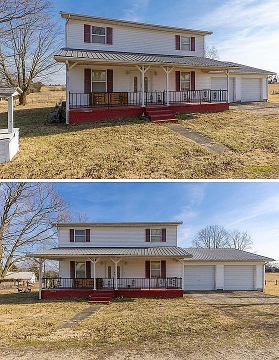 4 bedroom, 2 story home with 23 acres and many possibilities. Needs some paint and flooring but otherwise house has good bones to work with. Full, unfinished basement. Laundry in basement. Open sided barn, long barn, tractor shed, and a small garage/workshop. Attached 2 car garage. Metal roof, vinyl siding, screened in deck on back side of the house. Large porch on the front. Kitchen has breakfast nook, separate dining room, family room with separate sitting area. Main bedroom has a walk in closet and bathroom with shower. Hall bath is a full bath. There is a half bath off kitchen. Refrigerator, stove, dishwasher, and microwave stay. Has an electric furnace and a/c and a wood furnace, air handler on 2nd story. Has a tank less water heater and a water softener. Call or email for an appointment to come see your new home today!