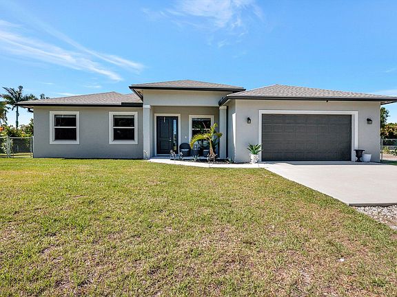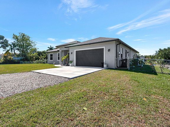 Beautiful home built in 2022 sitting on 1.15 acres that includes 4 bedrooms / 2 bathrooms / 2 car garage PLUS an additional den space. **IMPACT RESISTANT DOORS AND WINDOWS THROUGHOUT** As you walk in, you will notice the spacious layout of the home, with 10' ceilings and wood tile throughout. Lovely open concept living room area and kitchen space perfect for entertainment. The kitchen features white shaker cabinets, stainless steel appliances, quartz countertops, and plenty of counter space including the island. Split floor plan - airy primary bedroom that includes 2 walk in closets, and a gorgeous bathroom with 2 bathroom vanities, a walk in shower and roman tub. The whole backyard is fenced in with freshly planted clusia hedges that will provide an extra privacy barrier as they grow. Newly added paver patio space for outdoor entertainment! There is room for boats, RVS, trailers with the compacted gravel in place on the west side of the property. Everything is just like new in this home, very well taken care of!