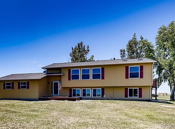 Well cared for and groomed 4.57 acre horse property with great mountain views. Close in acreage one mile east of the interchange at I-76 and 168th Ave. Property is fully fenced and has loafing shed and tack room. Newer roof, gutters, skylights, windows, sliding doors, paint, and swamp cooler (since seller has owned home). Seller has installed solar panels that are paid for (not leased). Wood and tile floors through much of the home. Two inch custom blinds on most of the windows. Updated kitchen with stainless steel appliances that are included. Updated full bath on main level. Large master bedroom has 3/4 bath and sliding glass door that goes on to private balcony. Large family rooms on main and lower level one with custom stone. Two bedrooms on main floor and two bedrooms on lower level. Attached two car garage. New deck 2019. Weld county taxes and no HOA.