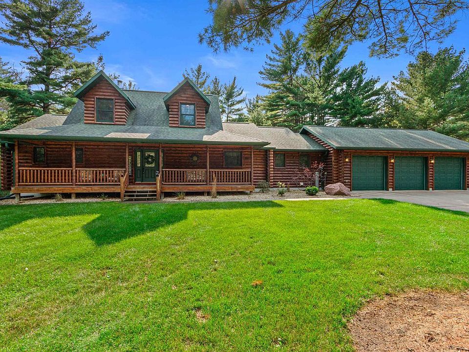 Closed simultaneously to same buyer per bank: House & 1.11 Ac & adjacent 1.10 Ac lot. Rustic luxury in this stunning log home on 2+ acres w/access to Castle Rock Lake & boat slip. Covered front porch & into the inviting living area, complete w/beamed ceiling, gorgeous stone fireplace & open loft for added charm. Gourmet kitchen features a large island, quartz counters & high end appliances, perfect for entertaining. Enjoy convenient main level living-beautiful primary bedroom w/en suite, great mudroom/laundry, office/den add'l 1/2 bath & cozy 4 season room overlooking the deck, patio w/firepit & private backyard. The walkout LL provides plenty of space for guests with a rec room, bath, cute bunk room, 2 add'l bedrooms & exercise room. 3 car hetated garage. Mostly furnished, move in ready!