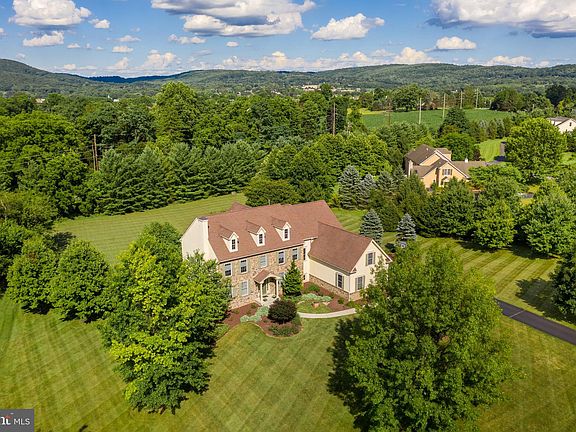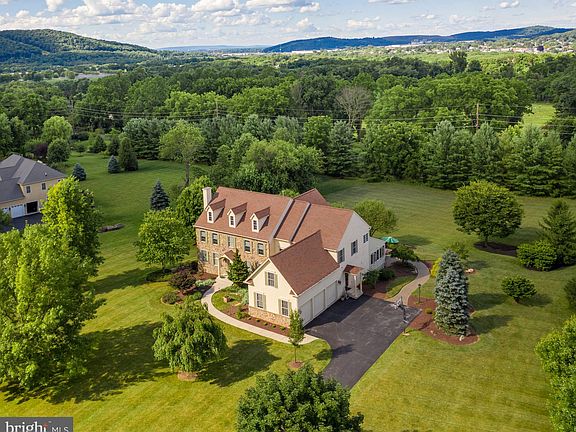 Gorgeous stone and stucco home on 2 acres in the heart of Saucon Valley! Elegant millwork, upgrades and hardwoods throughout! Both LR and DR feature transom windows & crown moldings. LR also has gas FP & custom built-ins. 2-story FR w/flr to ceiling stone FP spotlights center of home! Kitchen boasts custom cherry cabinetry, granite countertops & island, & SS appliances. Sliding door to beautiful sunroom addition! Completing 1st flr are office/5th bdrm, full bth, half bth, & laundry rm w/ext entrance. 2 staircases lead to 2nd floor. Stately MA bdrm has vaulted ceiling & hallway to MA retreat. Sumptuous MA Bath with quartz vanity, soaking tub & lg walk-in closet. 3 addt'l bedrooms have custom closets & bathrooms w/updated marble vanities. Expansive finished walkout LL w/ gym room, ample storage, & rm rough-plumbed for bath. Stunning landscaping & backyard paver patio, complete w/pergola & fire pit. PERFECT backyard for a pool! Rails trails, restaurants/shops nearby. Min to I-78!